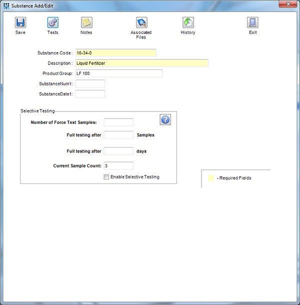The Matrix Gemini Frequency Testing Module can be easily set up using standard settings in the Substance Maintenance screen. It is possible to specify the testing frequency for each test on a substance or product e.g. perform all test(s) every ‘n’ samples registered. The system can also ensure that the first ‘n’ samples of a new substance or product undergo full testing before reduced testing begins.